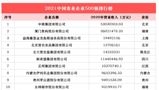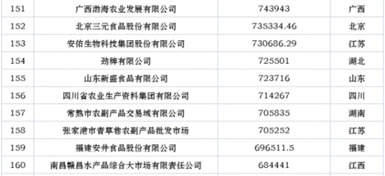 2021中国农业企业500强榜单发布,榜单聚集发布粮油、畜牧、奶业、水产、食品、流通、农资等领域龙头,其中榜单企业入围门槛为20年年收入12.58亿元。市场2020年实现营业收入70.53亿元,强势挺进2021中国农业企业500强榜单,位列第158位。这是继2019年和2020年荣获中国农业企业500强后,市场连续第三年荣膺中国农业企业500强。